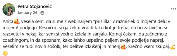 Zato sem tukaj. Da greš po tej poti hitreje, z manj napakami. In z več veselja. Z mojo podporo!